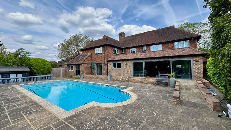 A key feature of the design is the extended open-plan living space, which opens directly onto the garden, creating a strong indoor-outdoor connection ideal for both daily living and entertaining. This fluid transition from inside to outside is further enhanced by the outdoor pool.
