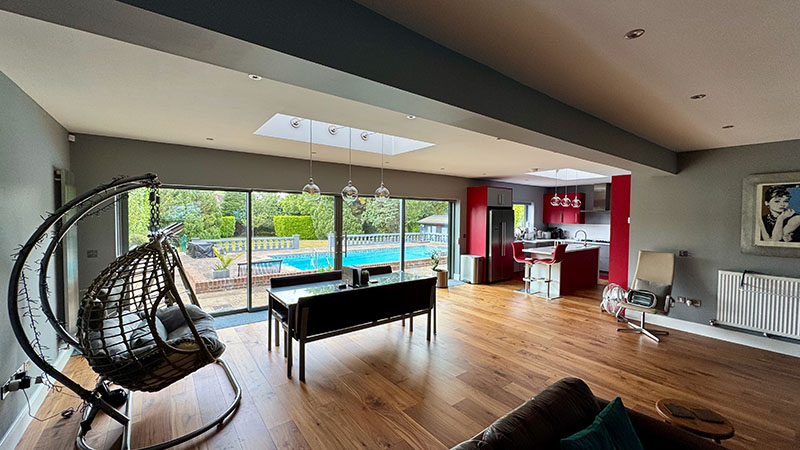 The scope of the project included the design and construction of a single-storey rear extension with front and rear access, improving flow and circulation. Internally, the home was adapted to include a ground floor bedroom, a level-access shower room, and a dedicated carer’s area, supporting accessible home design and independent living.